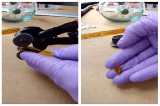Separamos las tiras y con la pinza de dos rueditas cortamos los cuadros, la cantidad necesaria para completar el diseño