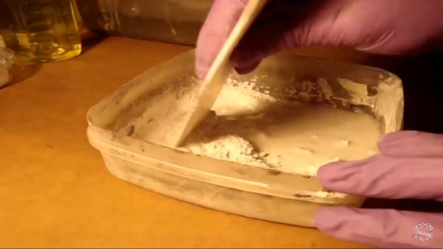 Al terminar de rellenar el candelabro, seguimos con la preparación de la boquilla, ponemos en una taza el polvo y agregamos agua, revolvemos hasta lograr una textura cremosa, la ideal para emboquillar la pieza