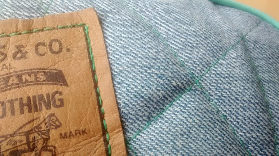 Como siempre, aproveché vaqueros viejos (no hay tela más "sufrida") y ya que en este caso eran unos Levis... pues reciclé hasta la pegatina de cuero!