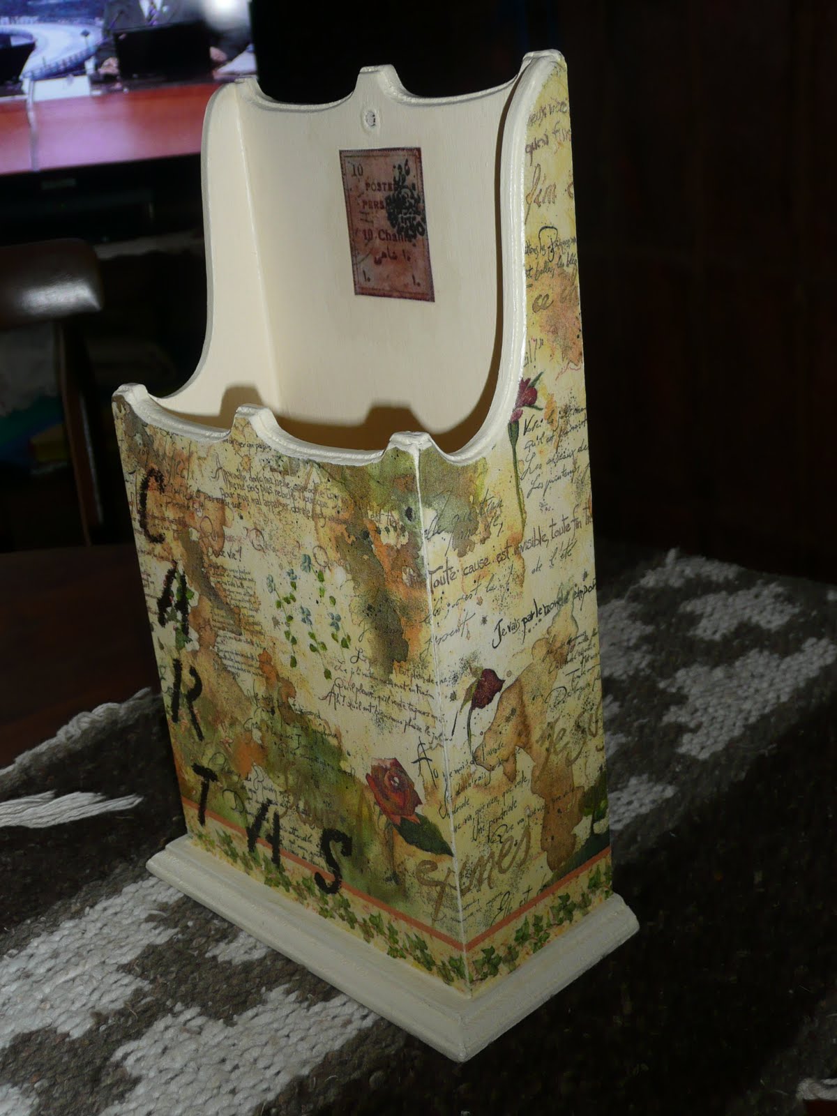 Hola amigas, en esta ocasión les voy a mostrar un portacartas que realizé en decoupage para un reto de un foro en el cual participo que se llama Compartiendo manualidades. Como saben el decoupage no es una de las técnicas que más realizo, pero poco a poco voy aprendiendo. Es bastante sencillo comparado con los que veo por ahí, pero cada vez me voy a ir animando a hacer cositas más complejas.