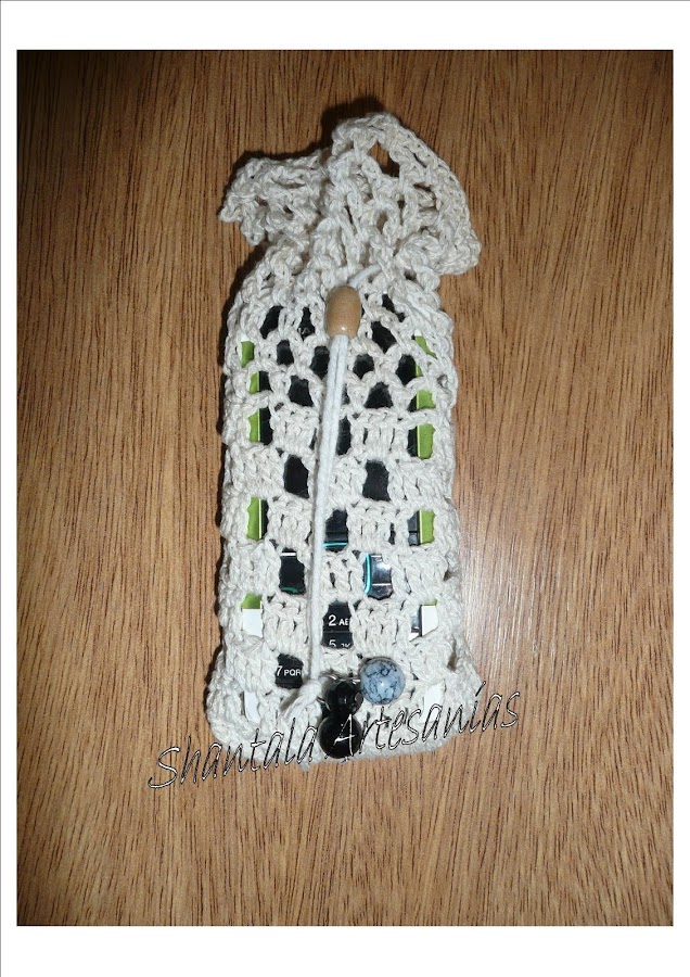 Les quería mostrar una bolsita que tejí al crochet, ayer mientras miraba una peli, no se porqué no puedo mirar la tele sin hacer nada,debe ser un problema,obvio que la peli estaba traducida, si tengo que leer ya no puedo,jaja