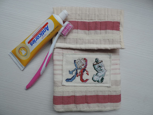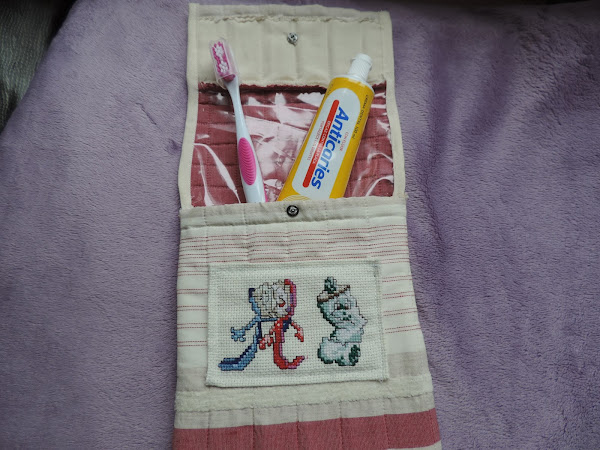 La verdad es que me ha tenido todo el mes liada con el reto, primero hice un porta cepillo de dientes, pero me quedo muy simple, y quería hacer algo más y al final decidí hacer otro, y para darle un poco más de vida y de color le hice un bordado en punto de cruz. Y este es el resultado
