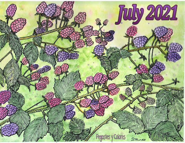 Esta semana ha estado lloviendo, pero nada mas pase la lluvia y ya sabrán que andaré metida en los zarzales de nuevo, colectando cuanta zarzamora pueda traer. Y de una de las fotos que tome al andar metida entre los arbustos de zarzamoras, fue que salio la portada o ilustracion para el mes de Julio, mi mes favorito porque es cuando disfrutamos de ir a alguna alberca, parques, comer helados, andar en bicicleta en las mañanas, es cuando mi hija tiene vacaciones (tambien las mias) y tratamos de hacer muchas cosas y de ir a muchos lugares disfrutando del clima y de la naturaleza. Gracias a Dios podemos ver como ya estan abriendo muchas cosas y ya cada vez mas personas estan vacunadas. En casa ya estamos completos de vacunas todos y andamos contentos.