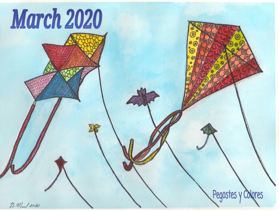Ahora que llega Marzo, me acorde de esos cometas aunque por aca donde vivimos todavia la nieve se esta derritiendo y la temporada de volarlos oficialmente aca tan en el Norte es hasta Mayo, pero como en muchas partes si es el mes de los papalotes, aqui tienen la inspiracion de hoy con esos recuerdos en esta portada.