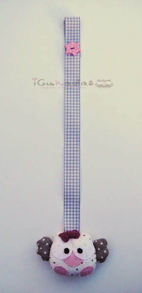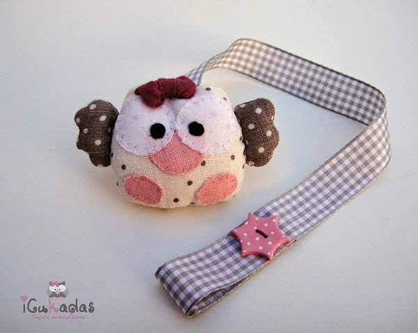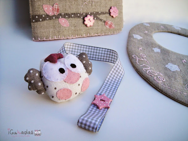 Y como el prota es este búhito o búhita más bien, regordeta y con su lazo, os enseño primero el chupetero.