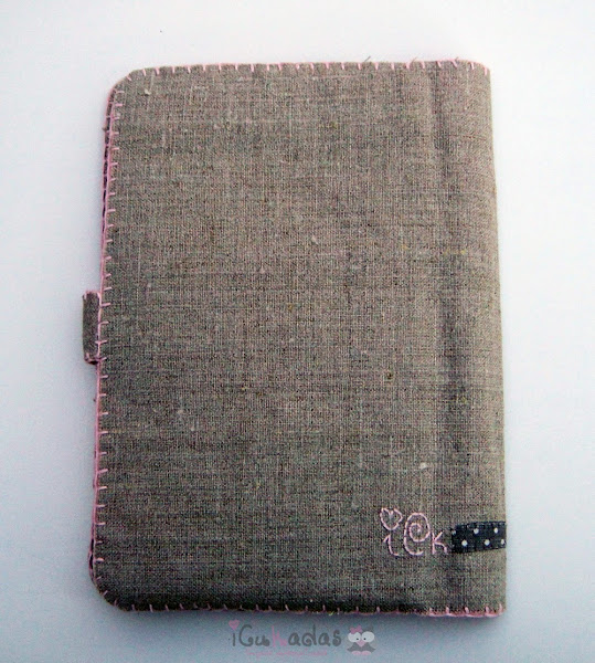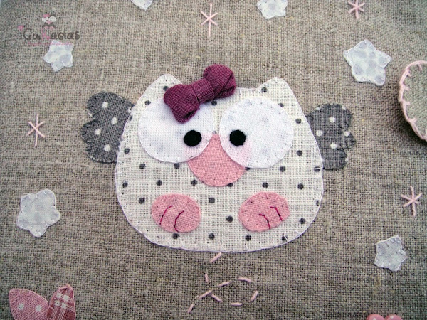 Bueno, se me ha olvidado decir, que todo el pack es de lino, aquí le di caña a la tela termoadhesiva y al patchwork, bordé detalles y añadí botones de fimo hechos expresamente en un color que le fuera.