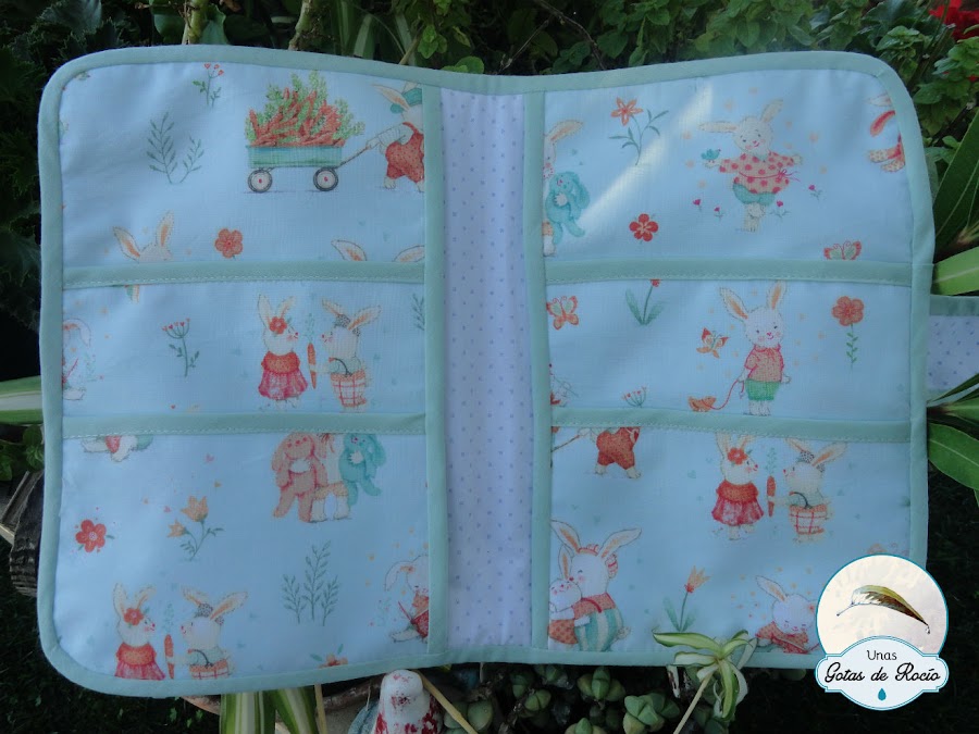 Ligeras modificaciones en su interior hacen que cada portadocumentos sea un trabajo único. Lo que es común en todos es la fundita de tela plastificada acolchada donde guardar la carpeta portadocumentos, la considero muy útil y siempre la incluyo.