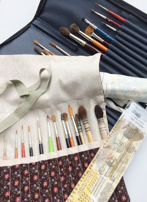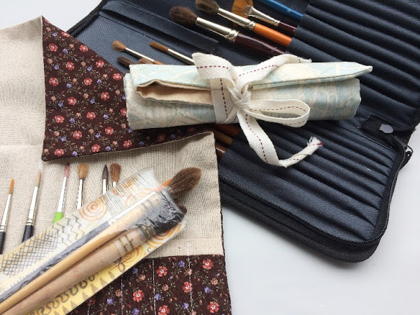 Un portador/manta para pinceles es una buena opción y más si la hace uno mismo! y tú? cómo transportas tus pinceles?