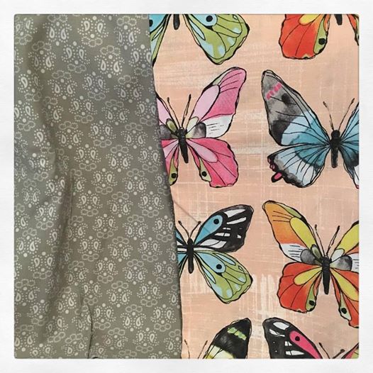 Yo he utilizado dos telas diferentes: la de mariposas me la regaló una amiga y es algodón del que se usa normalmente para patchwork. La gris es algodón tipo loneta, un poco más gruesa.