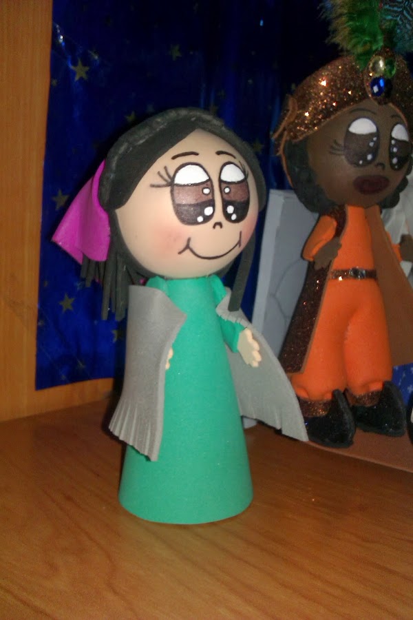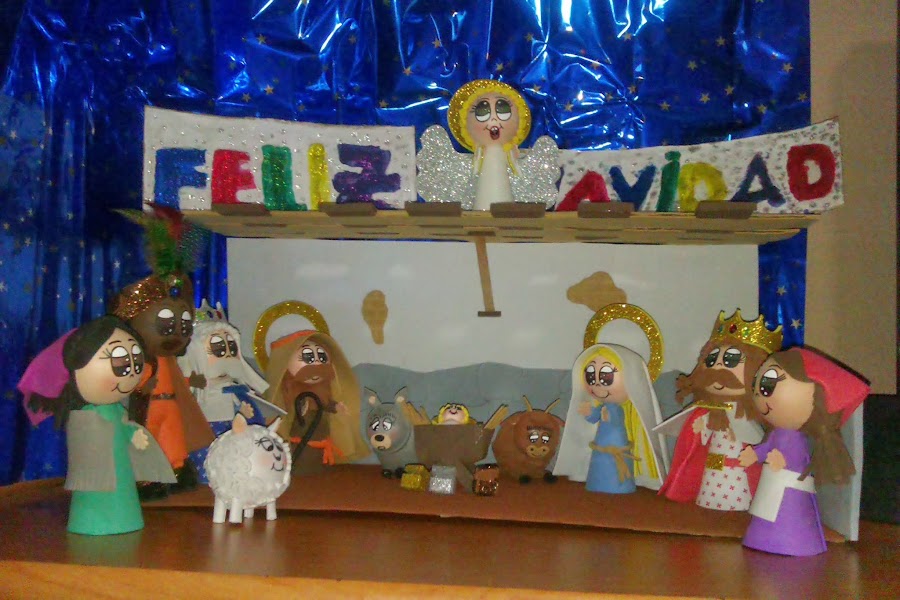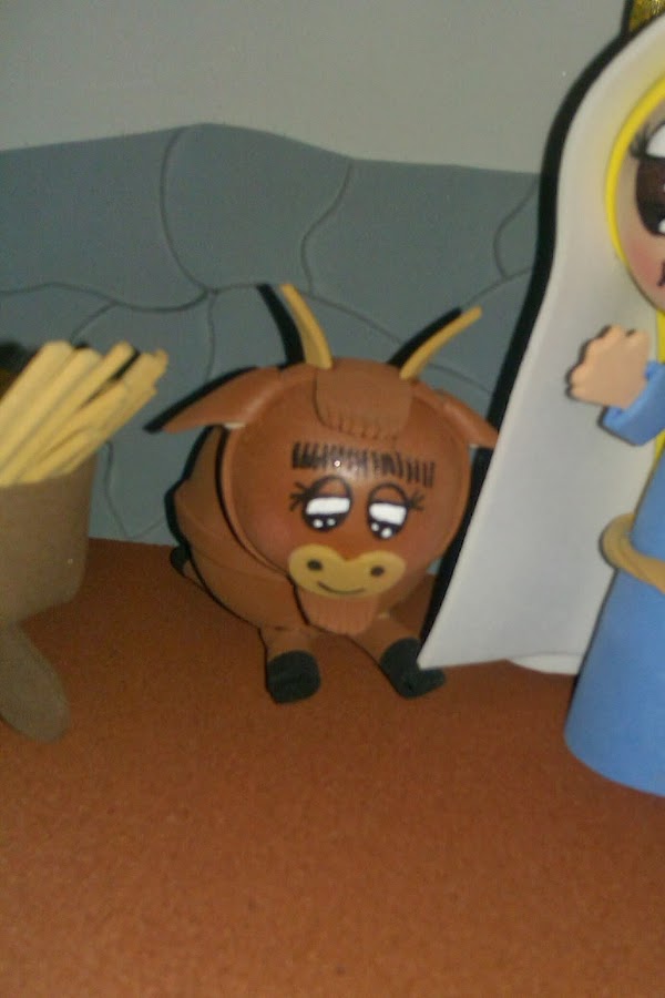 Mi esfuerzo me ha costado hacerlo, y no por dificil,.... pero estoy super satisfecha de la sonrisa de mi niña , me hace sonreir verla como disfruta jugando con él con las ganas que tenía que se lo hiciera. Y todo sea dicho, estan graciosos, cuando descubro que San Jose es el hermano gemelo de Gaspar, que el niño Jesus nacio con el moldeador hecho, o que no hay mula, sino burro, y la oveja tiene una indigestion de hierba y esta hinchadita, jejejejejejeje.