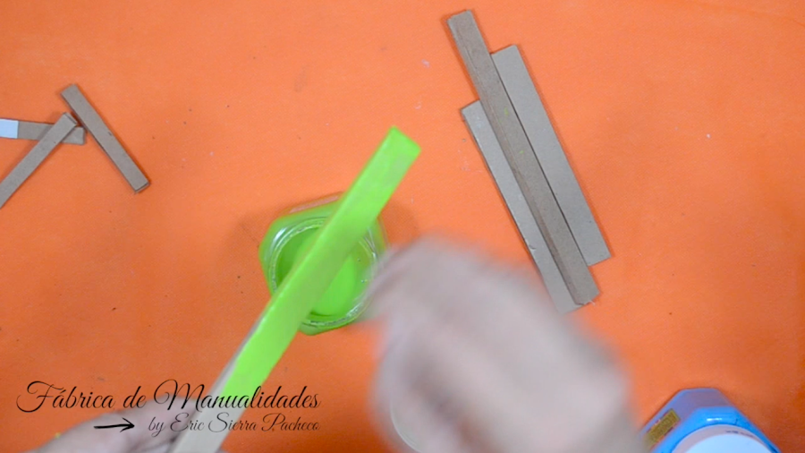 12. En un verde limón pintaremos las tiras que servirán de marco para la pizarra.