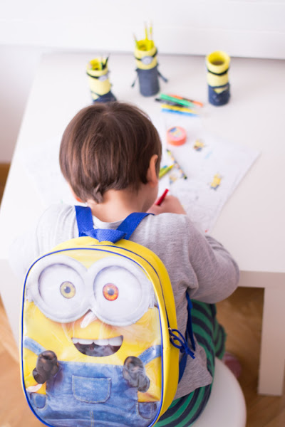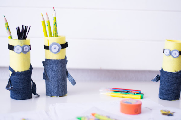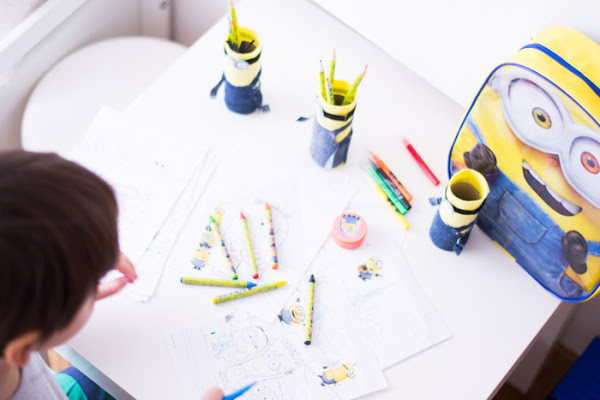 Y ahora te muestro como hacer unos portalápices de Minions para que todo esté recogido y a mano de los peques.