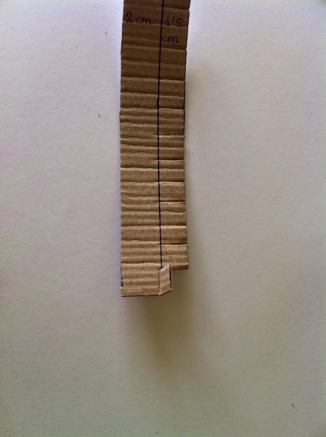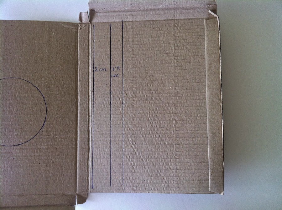 1. Dibujamos en el cartón un círculo con ayuda de un compás o de algún objeto redondo. También dibujamos dos tiras unidas: una de 2 cm y otra de 1.5 cm.
