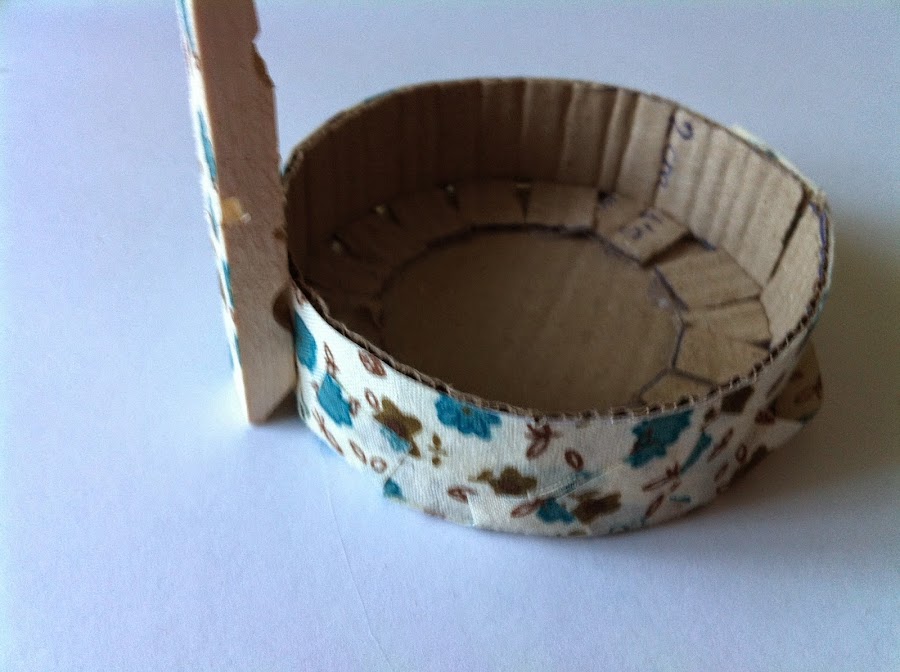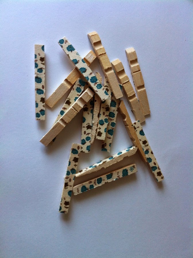 4. Después, vamos a desmontar las pinzas para quedarnos sólo con la parte que hemos decorado y con silicona caliente la vamos pegando en la base.