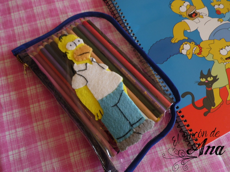 Se trata de un estuche para guardar los lápices, que es sencillo pero me gusto el resultado. La idea me surgió después de en las ofertas conseguir unas libretas de Los Simpson, cuando vi a la familia amarilla se me prendió el foco ¿qué hay más amarillo que Homero Simpson? jaja.