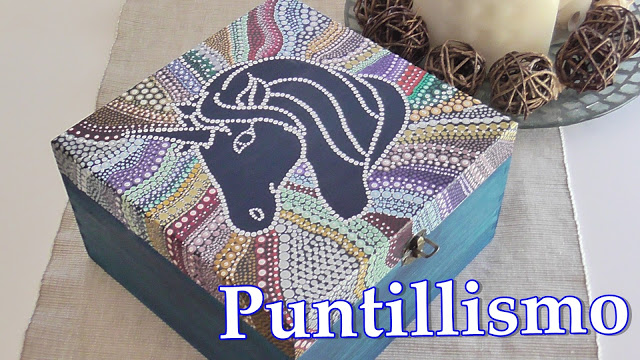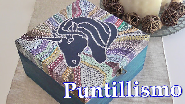 A lo que voy, uno de los trabajos de Amparo de puntillismo fue decorar una de sus bonitas cajas con un Unicornio en esa técnica. Puedes verlo AQUÍ