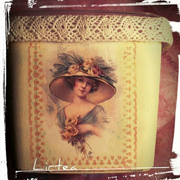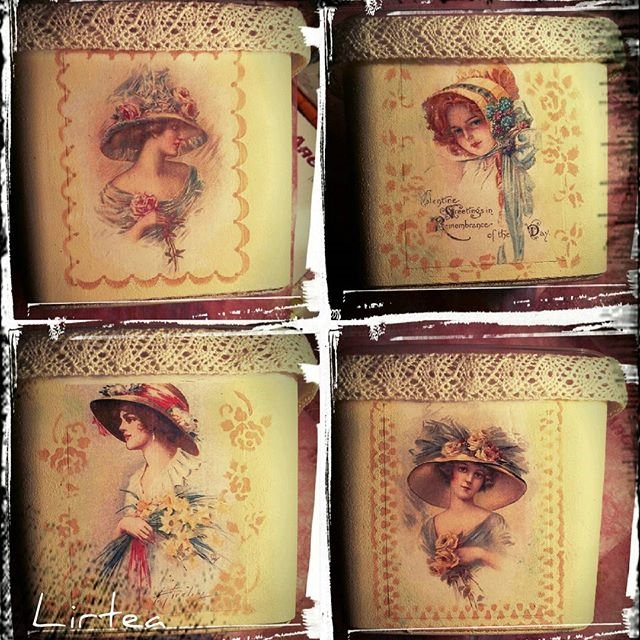 Imprimí unas imágenes de la red de damas con sombrero que me encantan y las fui pegando una en cada cara del envase.