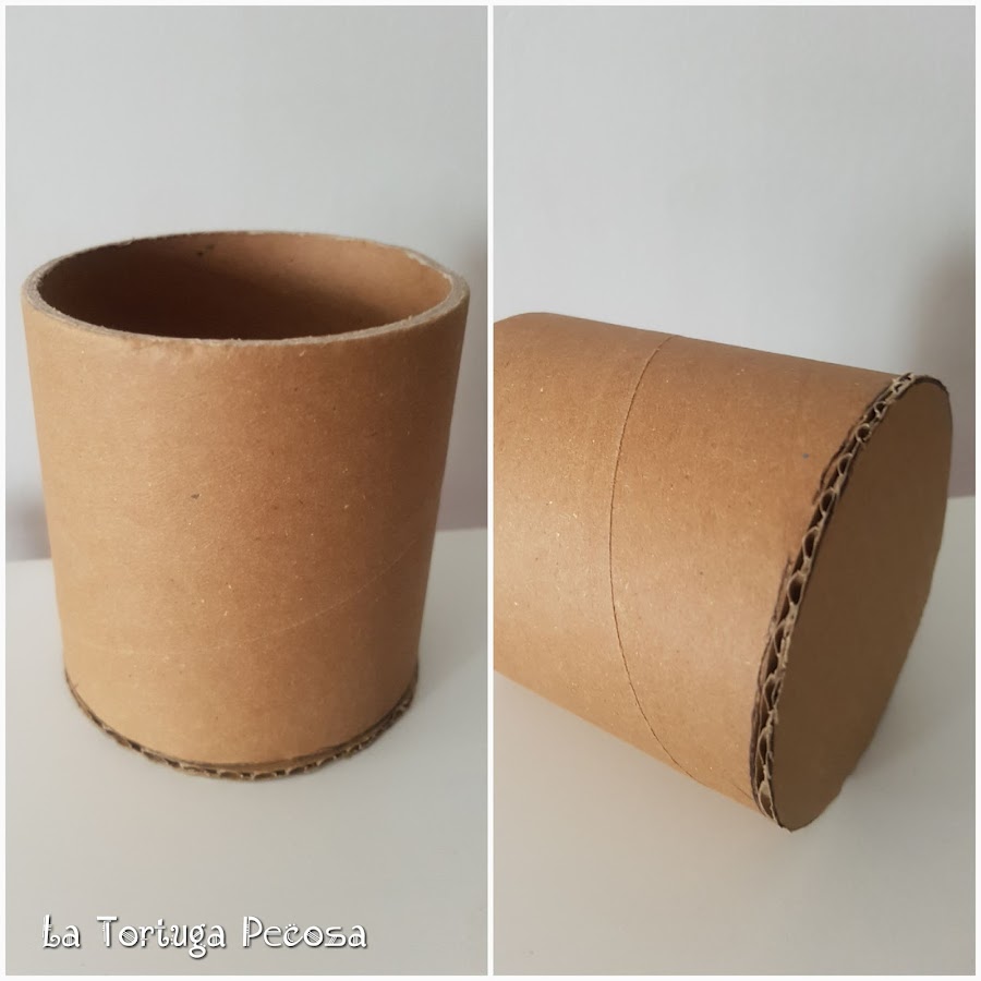 Al rollo, le pego en la base un cartón, para que haga de vaso. A partir de ahí comenzamos a coser.