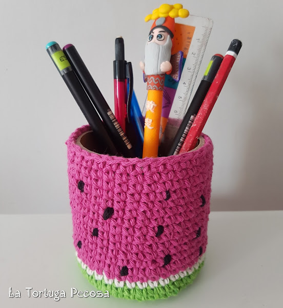 Aquí llega este bonito portalápices con forma de sandía, para alegrar nuestro escritorio de la manera más dulce. Hecho con el cartón del ovillo de algodón, me daba pena tirarlo, más cuando tiene esta utilidad tan molona. De nuevo concienzo con el medio ambiente, reutilizar, etc, es muy importante que todos nos impliquemos en la causa.