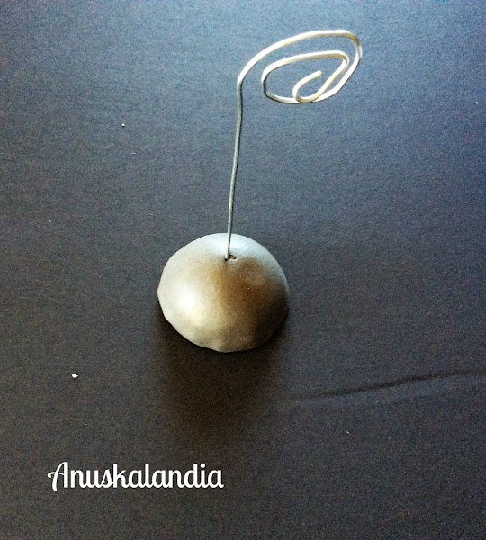 Ya solo nos queda, pegar la bola con el alambre y la casita a la base, además de hacer una linda nota.