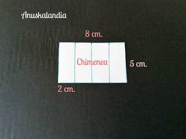 10.- Ahora vamos a hacerle una chimenea. Os adjunto las medidas en la siguiente foto. Podéis hacerla más pequeña si queréis o más grande.