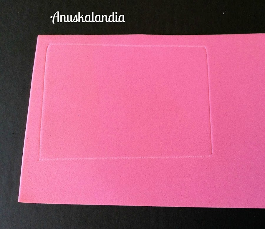 8.- Del mismo molde en cartulina que teníamos de la casa, recortamos la puerta. No me ha parecido conveniente haceros un patrón simplemente de la puerta, y gastar otra cartulina solo para eso. Hay que economizar, chicas. La marcamos en la goma eva del color de nuestra elección y la recortamos.