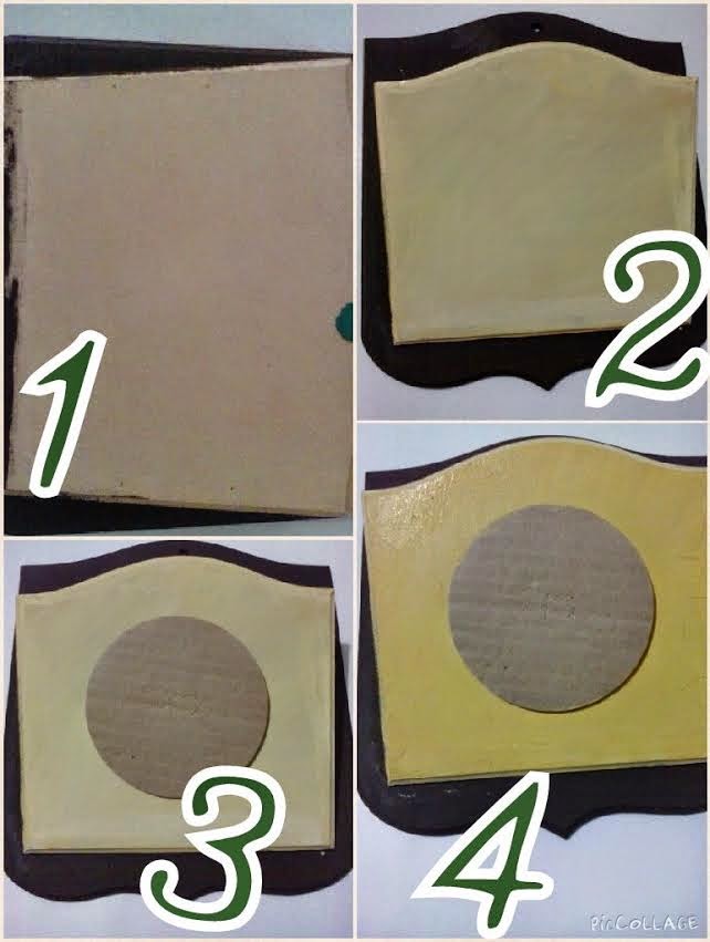 4. Alrededor del cartón pintamos de color amarillo ocre con bastante carga de pintura