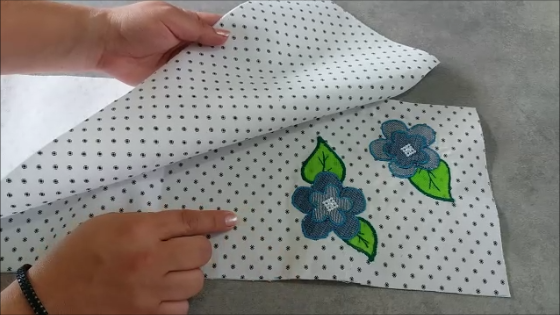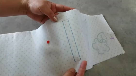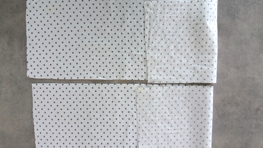 Entonces encaramos las dos piezas de tela por sus derechos y cuadramos bien los bordes.