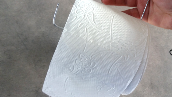 Metemos el papel en la varilla y la varilla en el portarrollo...