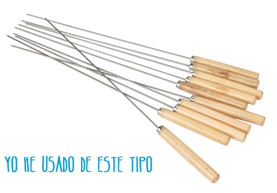 Puedes utilizar el alambre de una percha o gancho de ropa, o utilizar un pincho de cocina como es mi caso