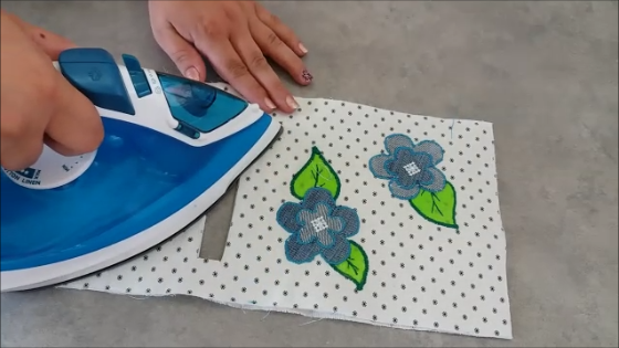 Ahora pegamos la entretela a las dos piezas, uniendo la parte del pegamento con el revés de la tela. Recuerda desactivar la opción del vapor si la tienes.