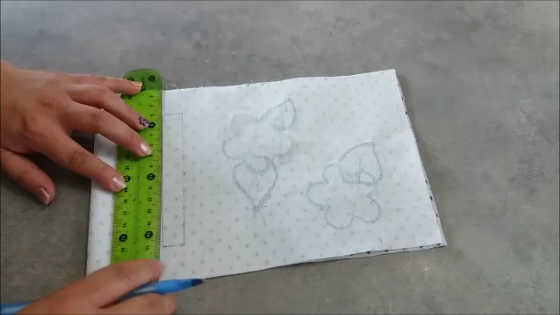 Lo primero es pegar el aplique a lo que será la cara principal de nuestro portarrollo. Yo he decidido hacerlo con retalitos de tela de jeans o vaquera porque la verdad es que comprarlos me resultaba algo caro, por lo menos por aquí donde vivo un solo aplique te puede costar hasta 5, así que es mejor para mí hacerlos.