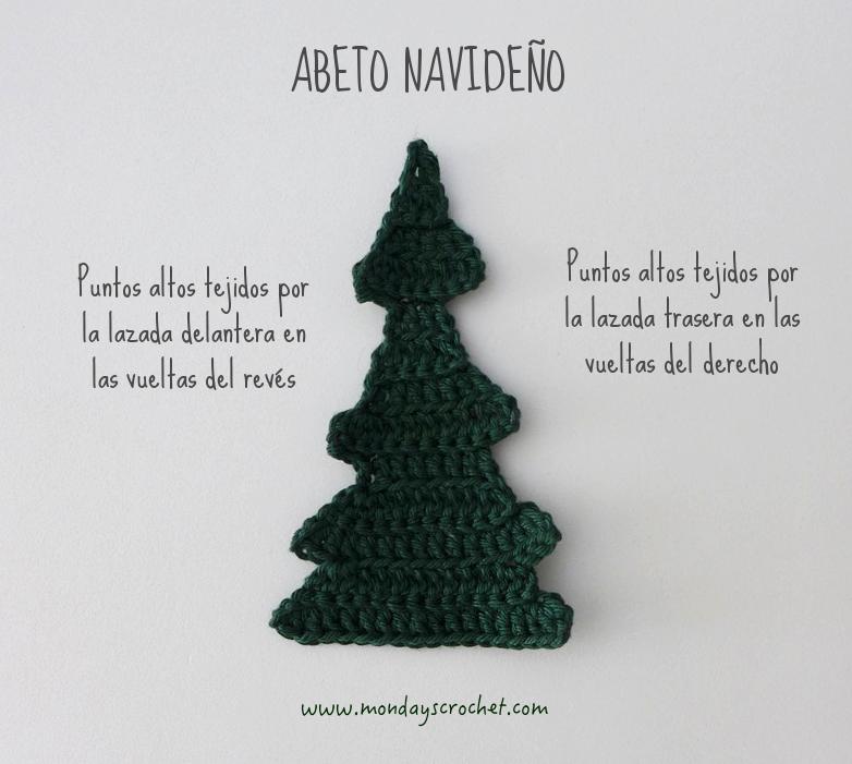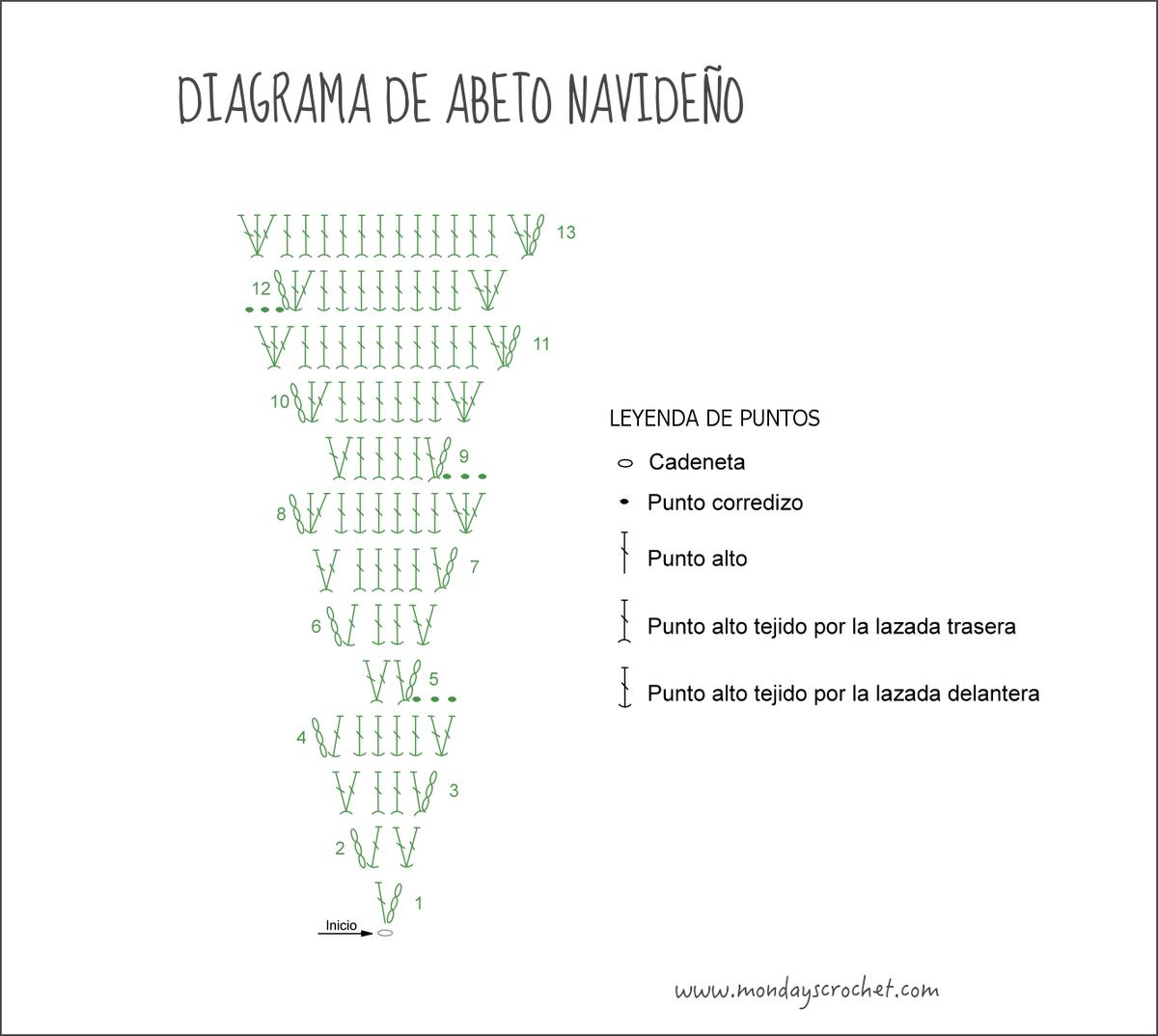 PARTE 1: Tejemos p.a. haciendo la forma del abeto y dejando en cada vuelta una lazada vista.