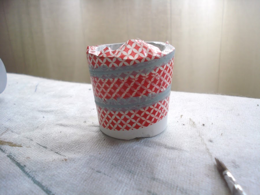 Para hacer mis portavelas he usado cemento blanco, un par de botes de yogur, washitape y pintura.