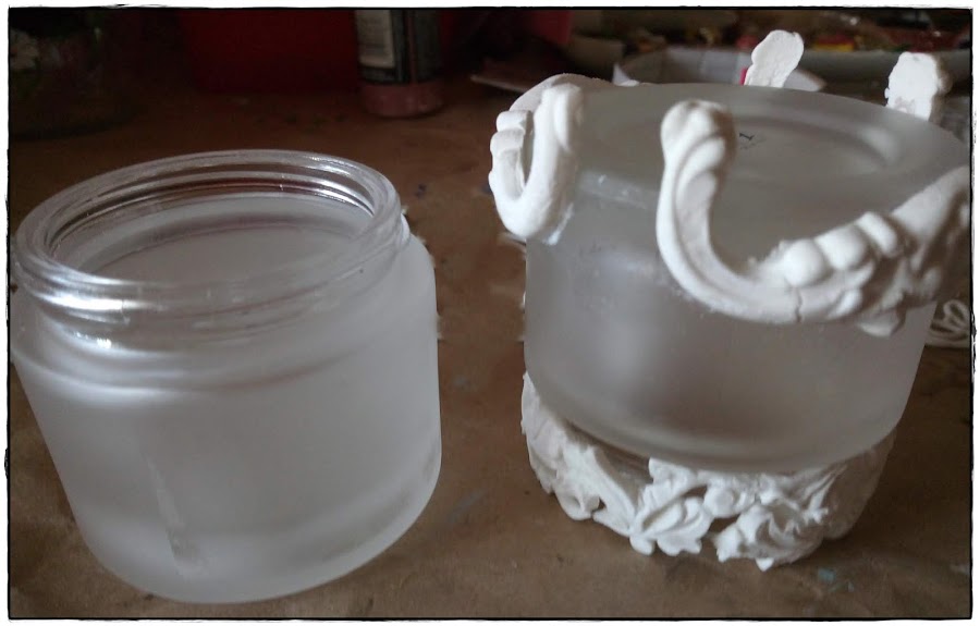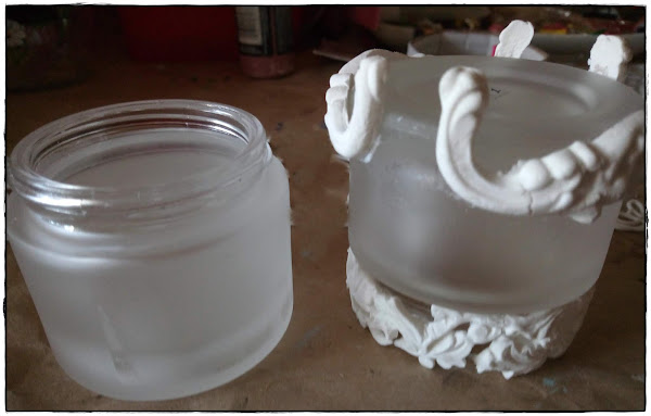 Estos tarros los uso mucho para guardar restos de pinturas y esta vez se me ocurrió darles otra vida. Al ser esmerilados pensé que serian una buena opción para hacer mis portavelas y creo que fue una buena elección.