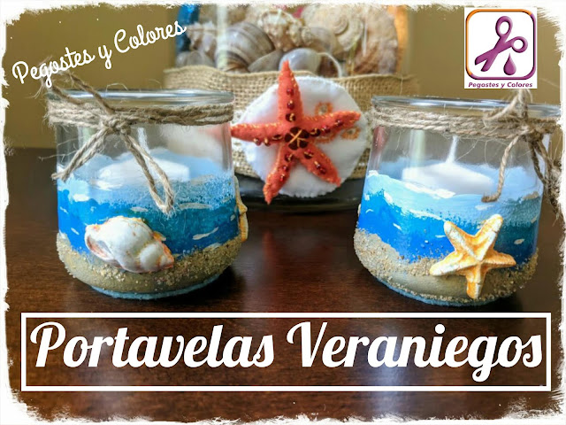 Tenia el plan de hacer algo con alambre, pero ya no alcance de tiempo y como lo que me sobran son frascos, aquí me tienen reciclando para hacer un par de portavelas, que no solo son veraniegos, son estilo marinos.