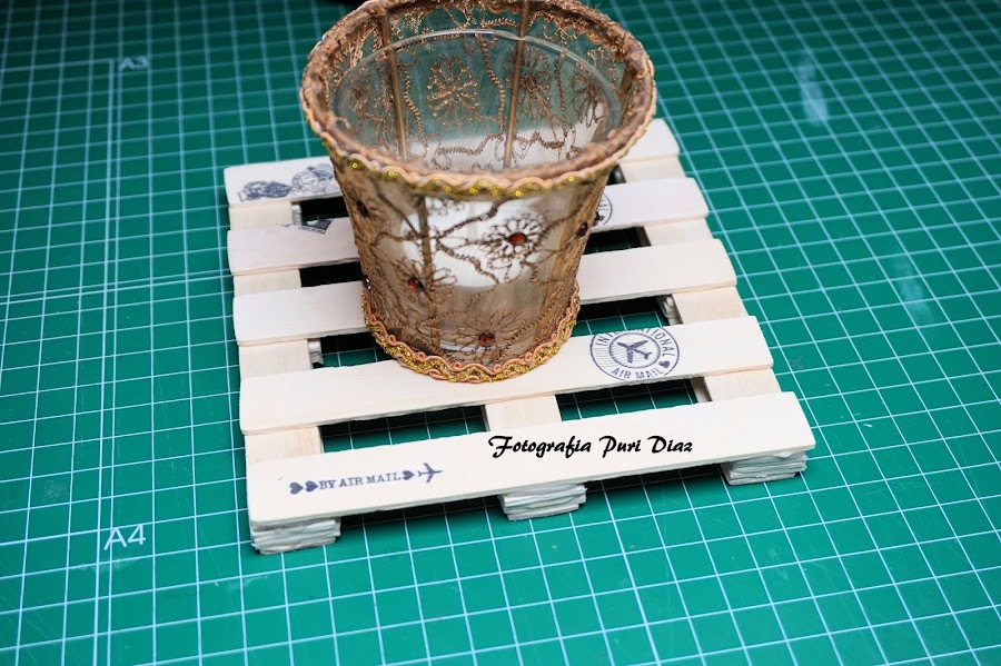 hoy os traigo una manualidad muy rustica y creativa...un posa vasos en forma de palet...¡espero que os guste!, para realizar este mini palet ya os dejo en el vídeo los materiales.