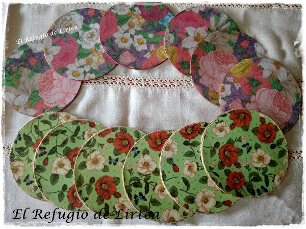 Hoy os enseño uno muy fácil. Son unos posavasos que he realizado reciclando otros de cartón.