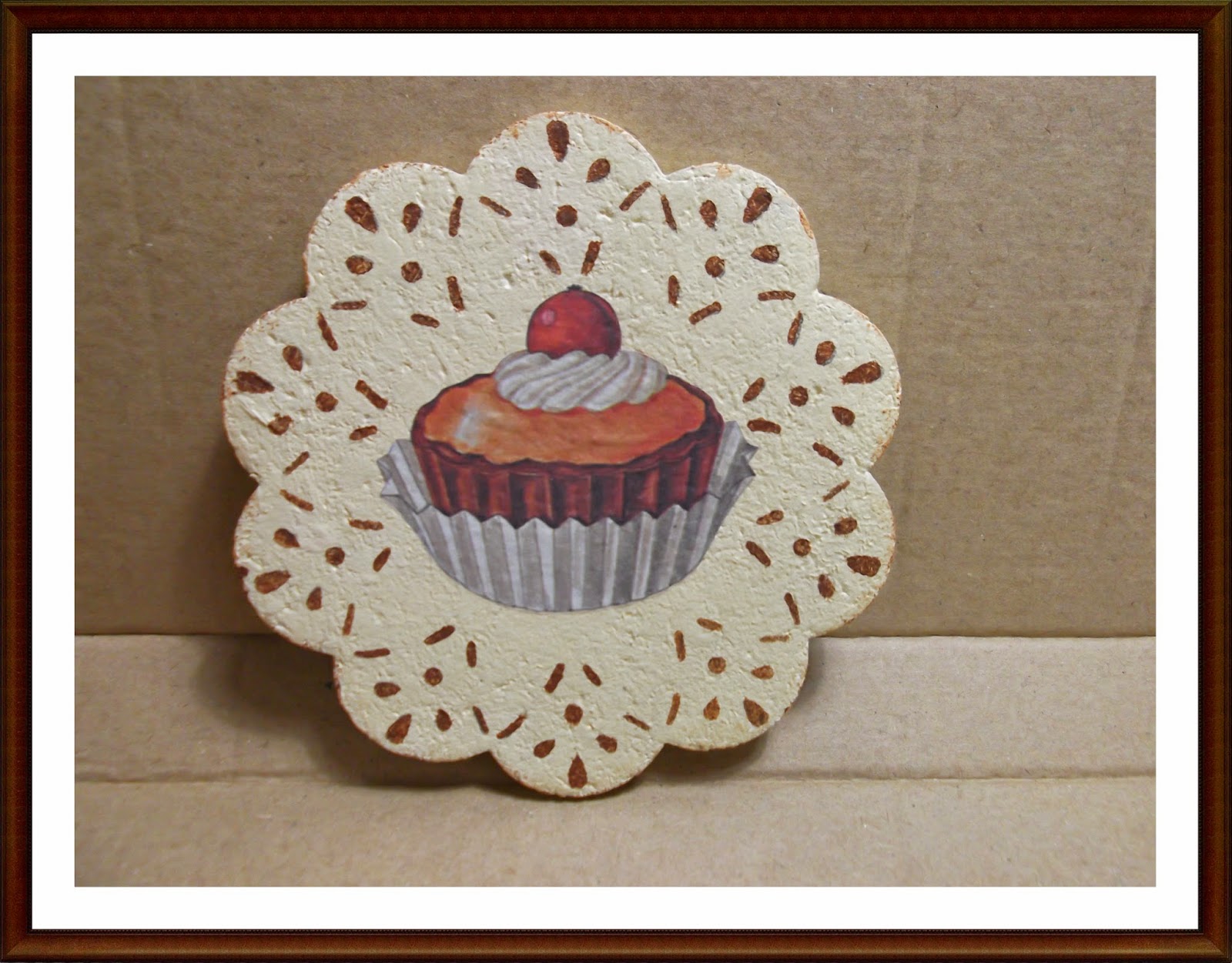 Nunca había trabajado en corcho y creo que lo volveré a utilizar en más trabajos porque es una superficie que se presta muy bien para hacer decoupage, incluso sin pintarlo.