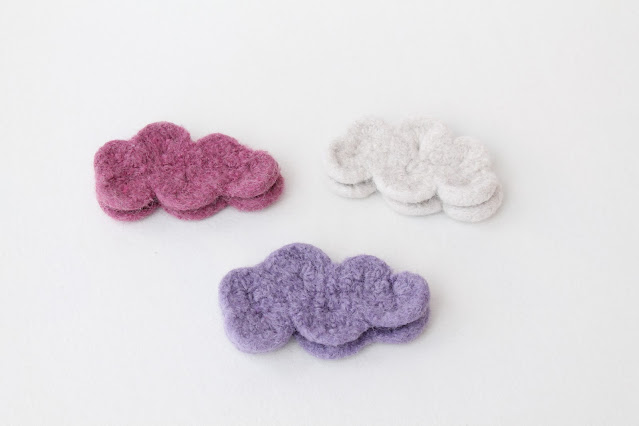 Así que, escogí los colores para mis nubes entre varios ovillos de DROPS Eskimo que tenía en mi "stash" y, después de terminar de darles forma con el ganchillo, seguí la técnica de fieltrado en lavadora propuesta para este tipo de lana.