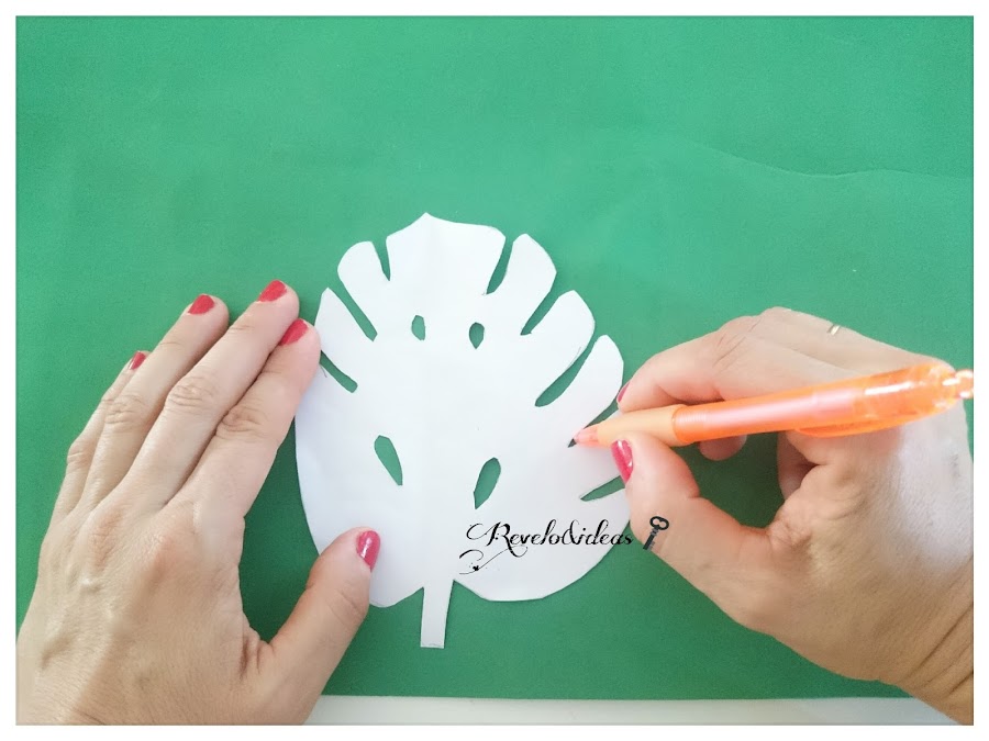 Recortar la silueta de la hoja de mostera dibujada, utilizando las tijeras.