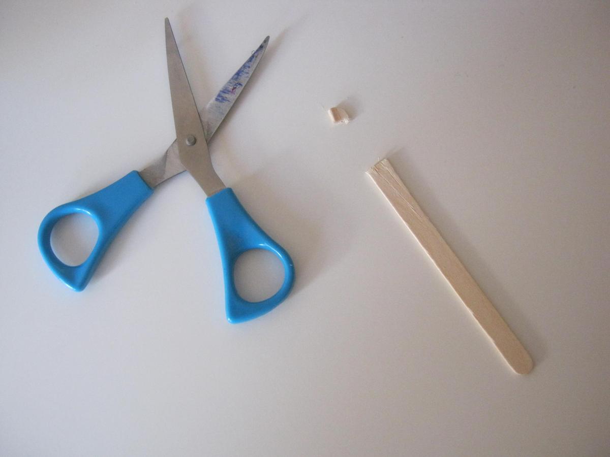 Lo primero está en cortar los palitos (las puntas redondeadas) con las tijeras.