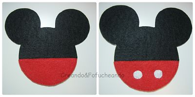 Búscate un molde apañao de la cabeza de Mickey,o dibújalo si se te da bien,y recorta 2 cabecitas en Fieltro negro: una para Mickey y otra para Minnie.