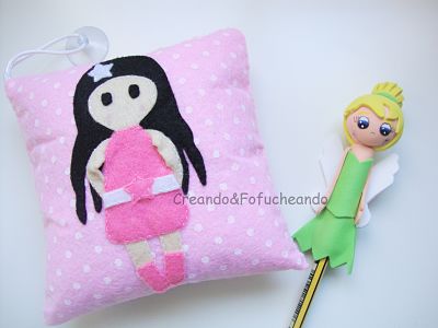 Son el Cojín de Gorjuss, que hice el pasado verano,y un Fofulápiz de Campanilla,que te mostré hace unas semanas,a las que añadiré algunos detallitos más.