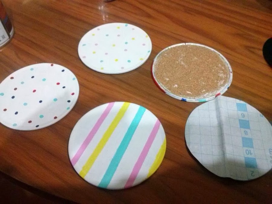 Yo decidí hacer de dos modelos diferentes, por lo cual vamos a empezar con el primer modelo, "de lunares" tan fácil como decidir los colores que más nos gusta he ir pintado lunares en el posavasos.