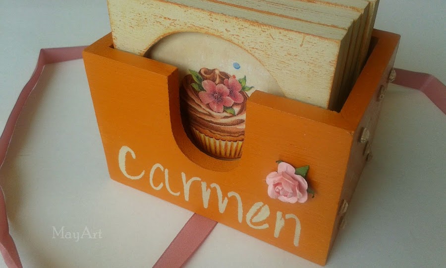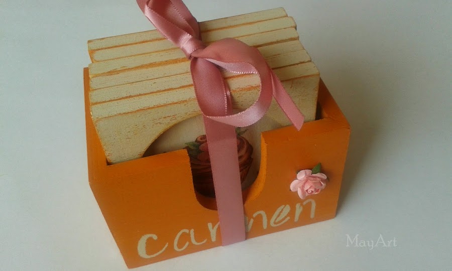 Quiso encargarme estos posavasos personalizados con su nombre, y la verdad es que ¡¡le han encantado!!