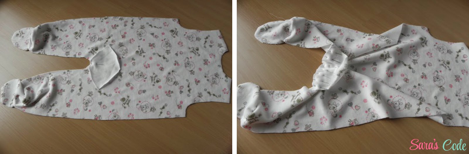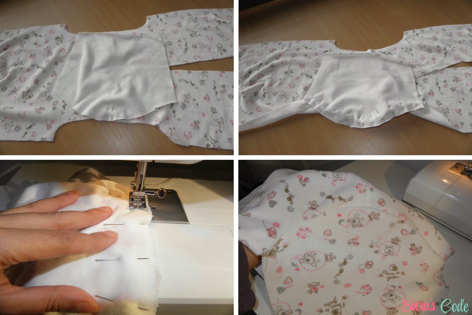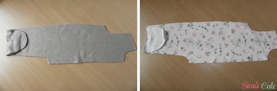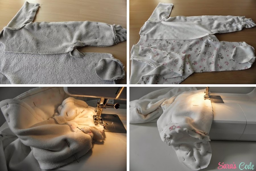 ? Hacemos la misma operación con las piezas del cuerpo y la manga del tejido de jersey, dejando un hueco abierto en una de las perneras.