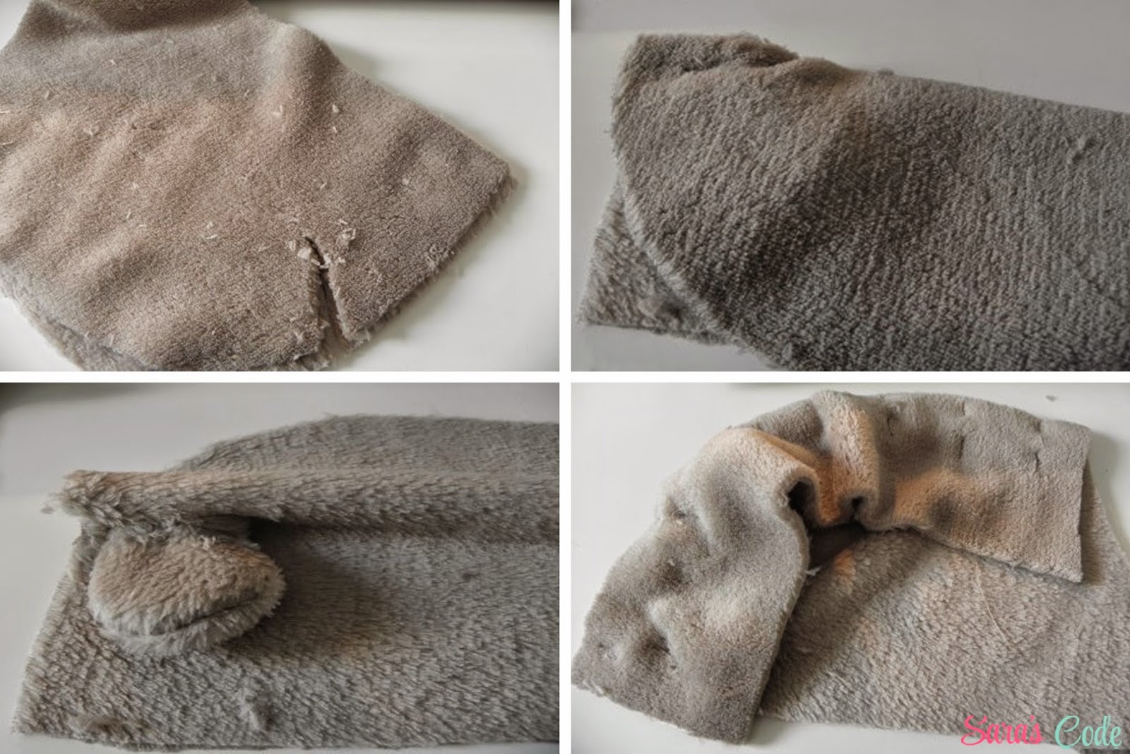 ? Volvemos la prenda del derecho y cerramos el agujero de la tela Minky con una puntada invisible.