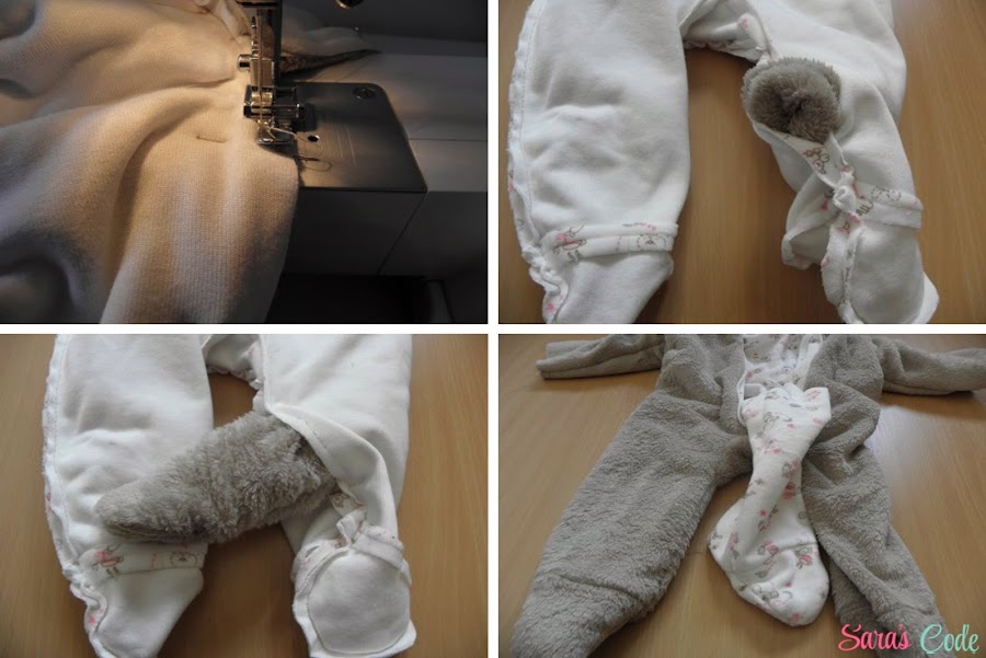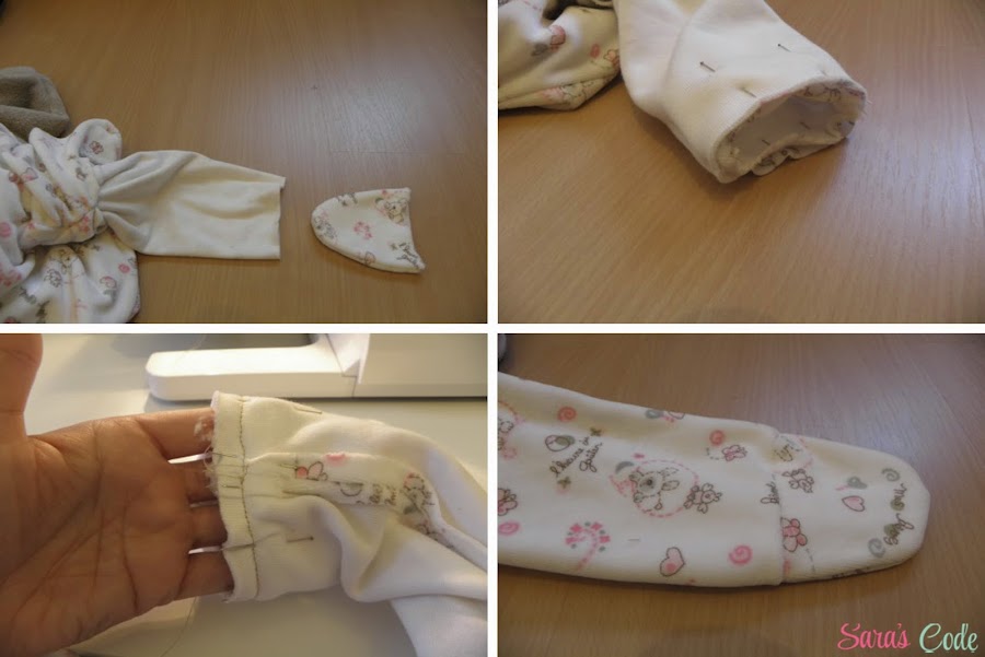 ? Cosemos dejando un agujero de unos 10cm en la parte interior de la pernera del tejido de jersey, para poder dar la vuelta a la prenda.