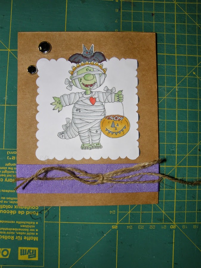 En los regalos para Isabel también iba esta postal, como no, con motivos de Haloween. La verdad es que la hice más corriendo de lo que hubiera querido pero se me echaba el tiempo encima....otra vez, resultado de las prisas:una postal sencilla pero bonita.